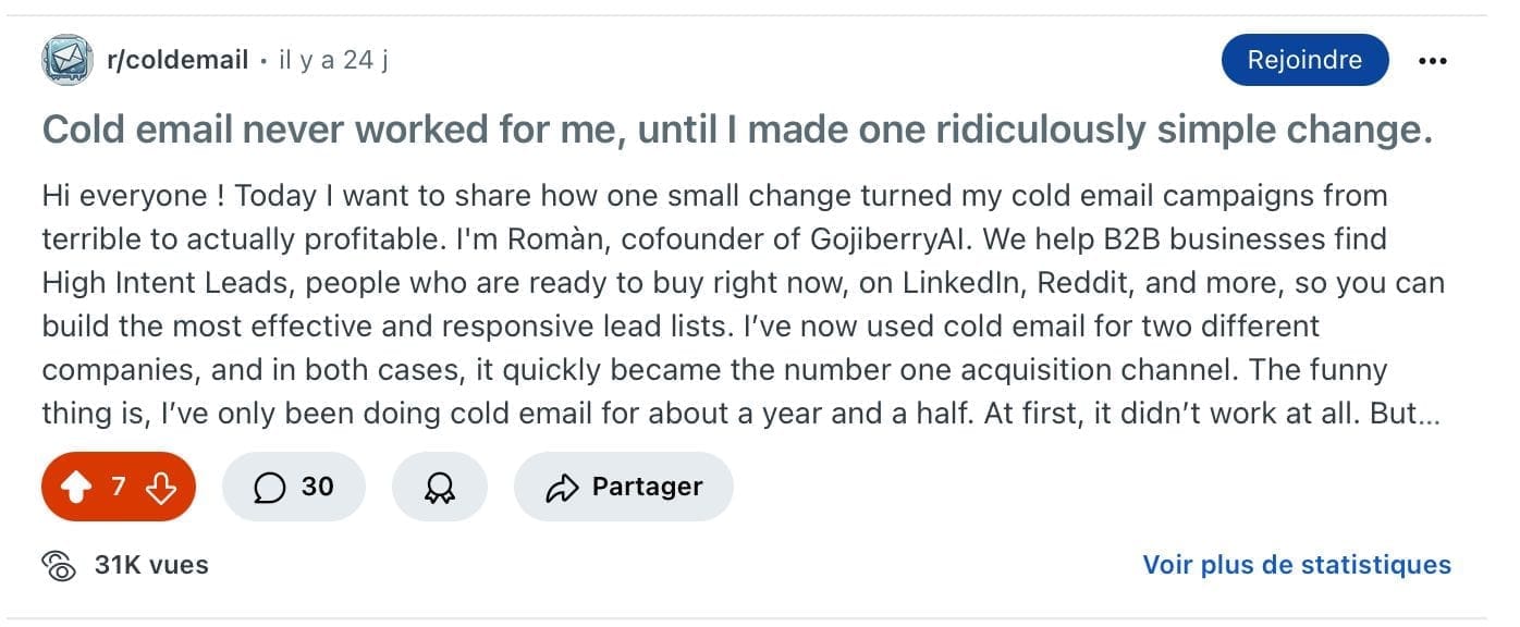 Et bonne nouvelle : la prospection via Reddit, c’est exactement ça.